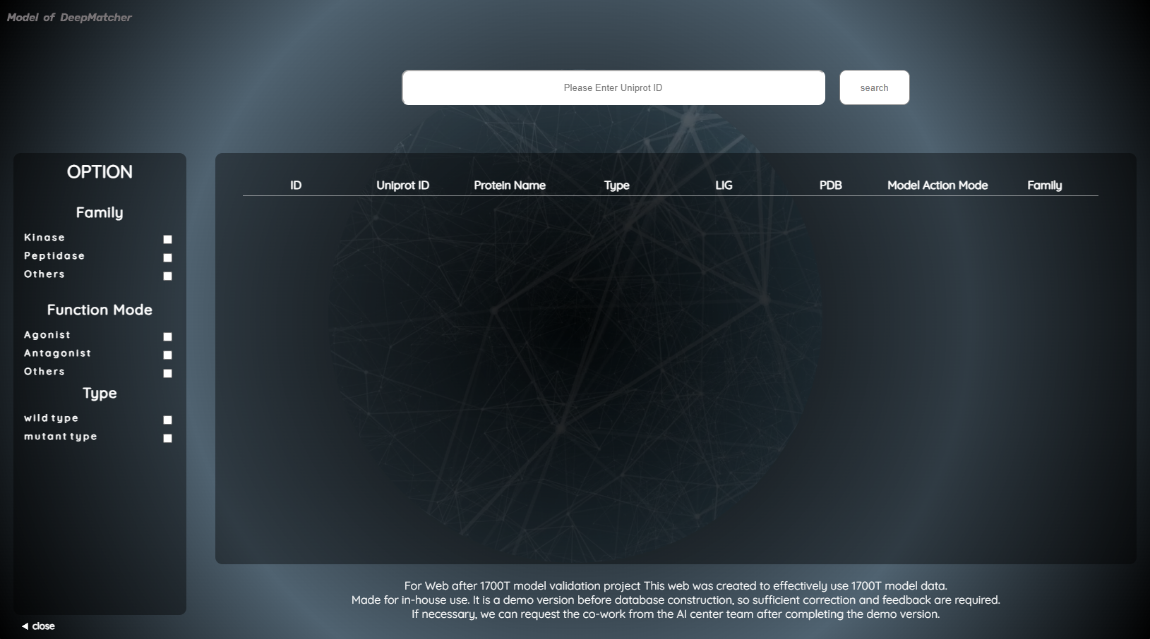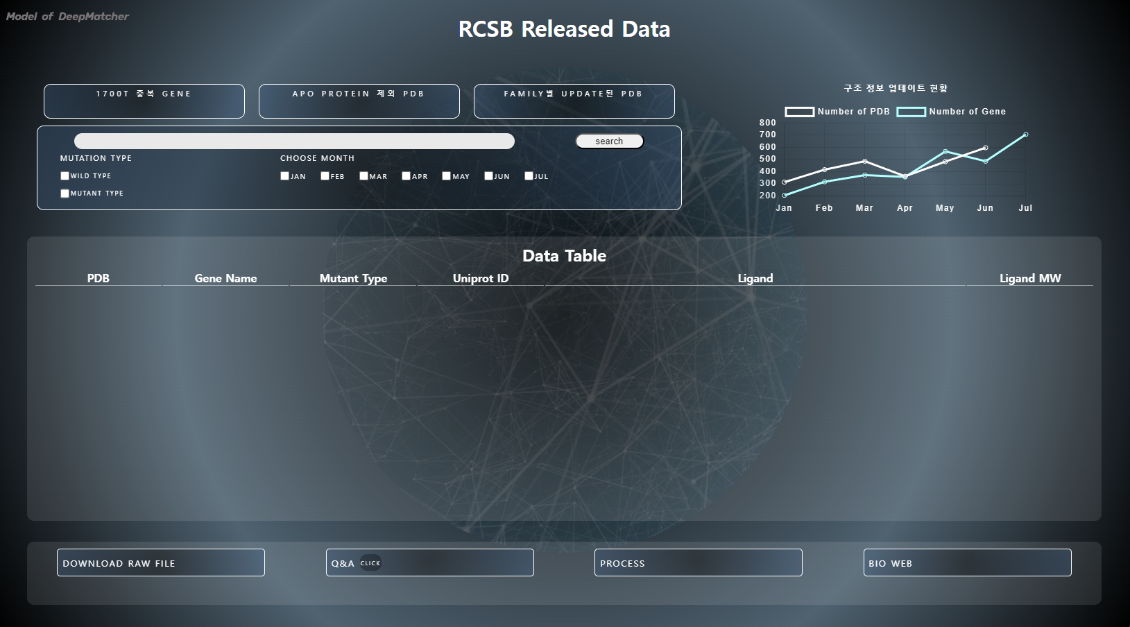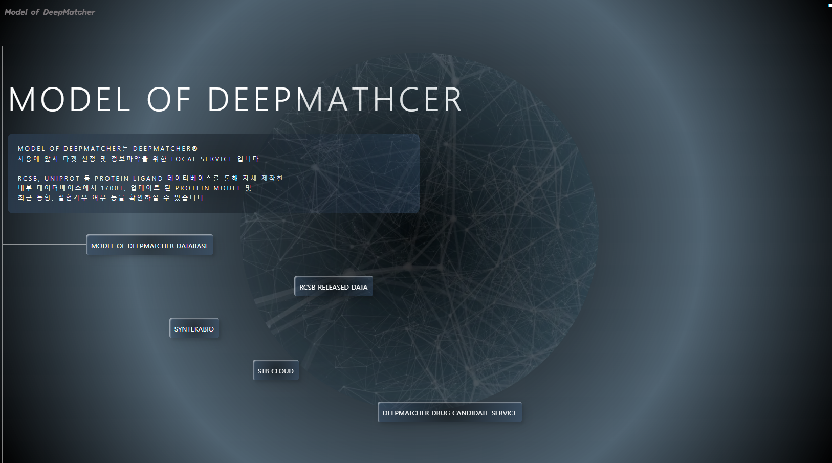 연구 데이터 및 약물 개발에 필요한 단백질, 화합물 라이브러리를 활용해 싱글 페이지를 제작했습니다.